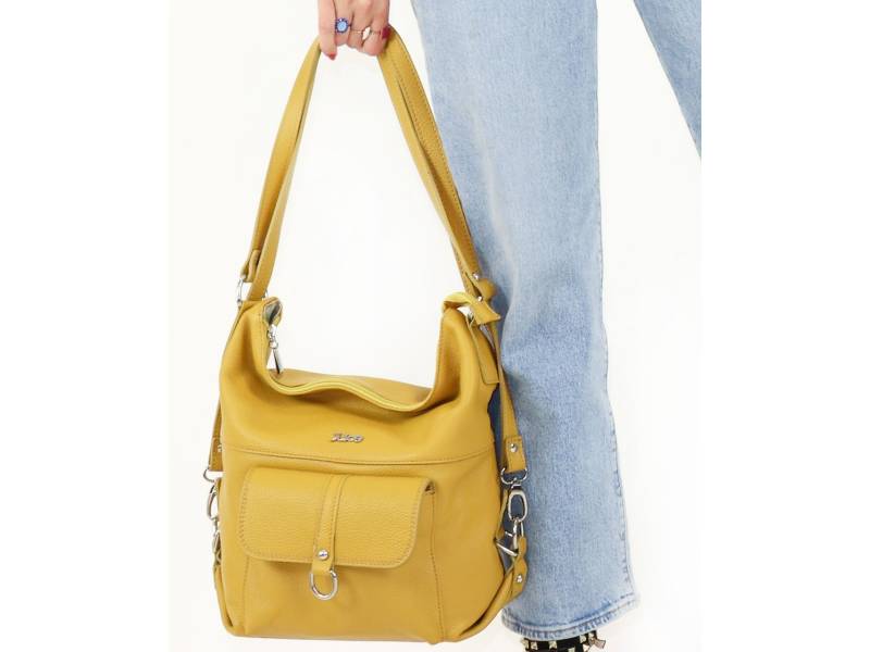 Dámská kožená kabelka a batoh v jednom Juice - hořčícová