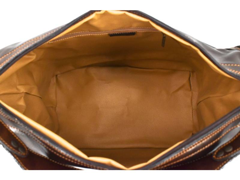 Luxusní cestovní taška z pravé kůže . Taška  se zapíná na zip a její vnitřní prostor je nedělený a po jeho stranách najdete otevřenou kapsičku na drobnosti a kapsičku na zip.