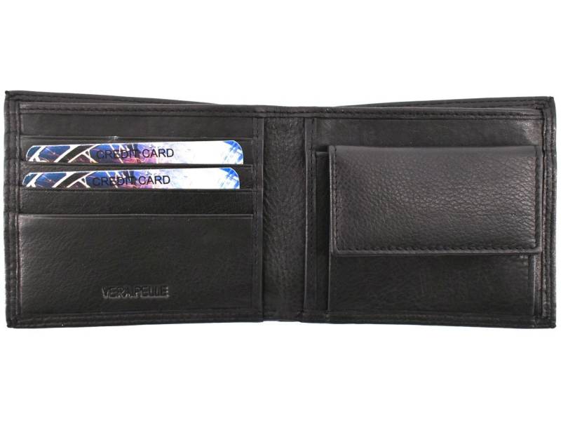 Pánská kožená peněženka je šitá z pravé kůže s orientací na šířku. Uvnitř se nachází mincovník, kapsa na papírové bankovky a přihrádky k uložení kreditních karet a dokladů. Peněženka je zasílána v dárkové krabičce.