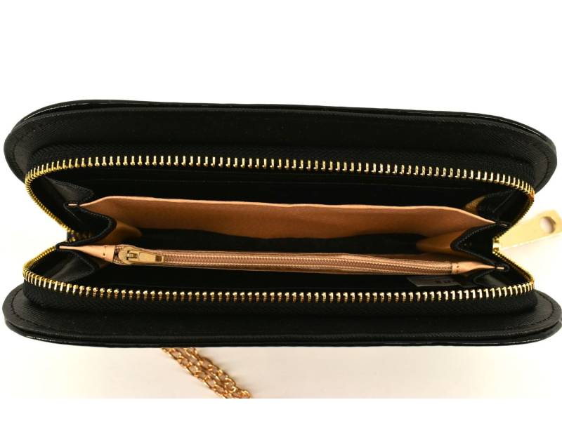 Dámská / dívčí peněženka pouzdrového typu lakovaná. Je velmi prostorná a nabídne vám přihrádku na zip na mince, kapsičky na bankovky i přihrádky na platební či jiné karty.