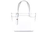 Dámská kožená kabelka, která zaujme svým elegantním tvarem. Vnitřní prostor kabelky je rozdělen větší kapsou na zip na dvě poloviny. Dále uvnitř najdete  otevřené kapsičky na drobnosti a další kapsu na zip. Součástí kabelky je nastavitelný a odnímatelný popruh přes rameno.  Kabelka je velmi prostorná a není problém do ní vložit formát A4.