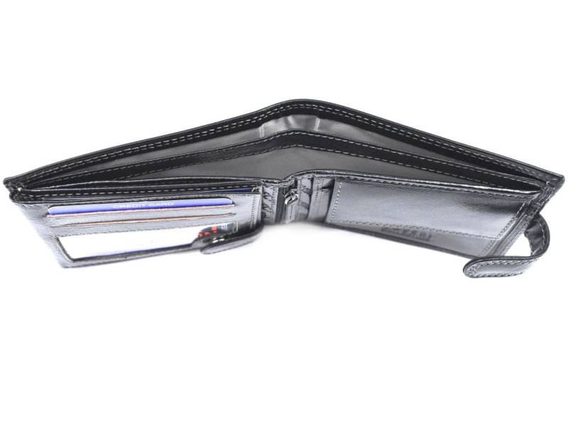 Moderní pánská kožená peněženka je šitá z pravé kůže s orientací na šířku. Uvnitř se nachází mincovník, kapsa na papírové bankovky a přihrádky k uložení kreditních karet a dokladů. Peněženka je zasílána v dárkové krabičce.
